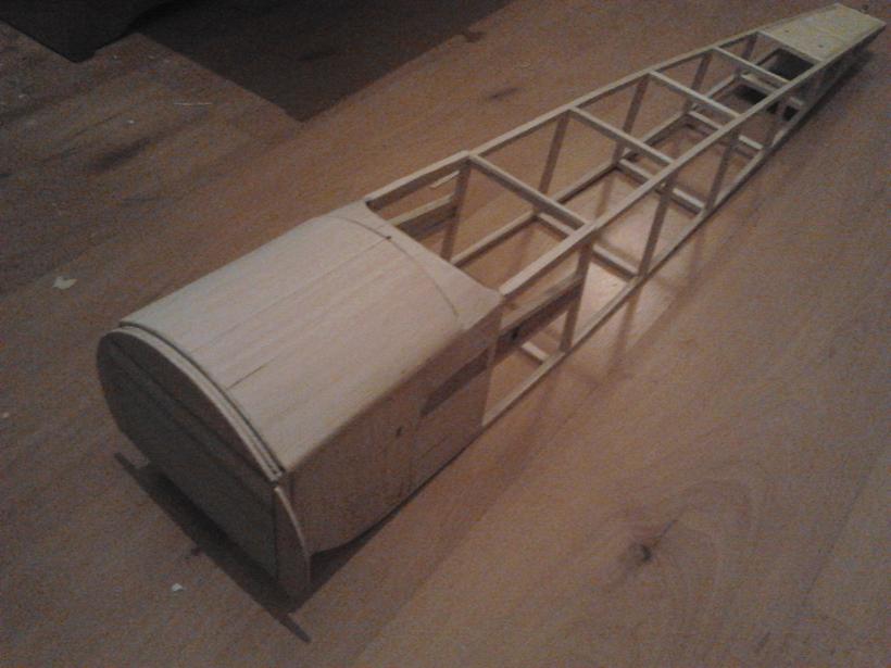 La "tapa" del fuselaje ya está enchapada con balsa
