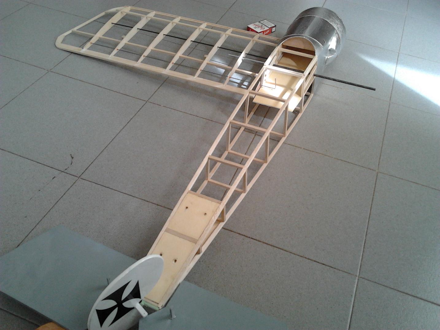 A ver, las alas y el fuselaje van "ensartadas" con una varilla de 50cm de largo y de 6mm de grosor, aparte las alas llevan un refuerzo de varilla de carbono mas la varilla que hace la torsión de acero de 2mm.