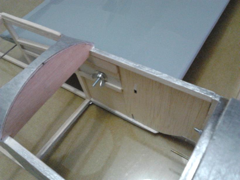 ...que se atornilla desde el interior del fuselaje mediante una "palomilla" pensaba en hacer el sistema de un muelle tirando de ambas alas, pero me quitaba mucho espacio y este sistema va bastante bien.