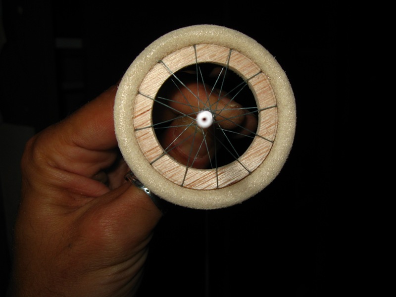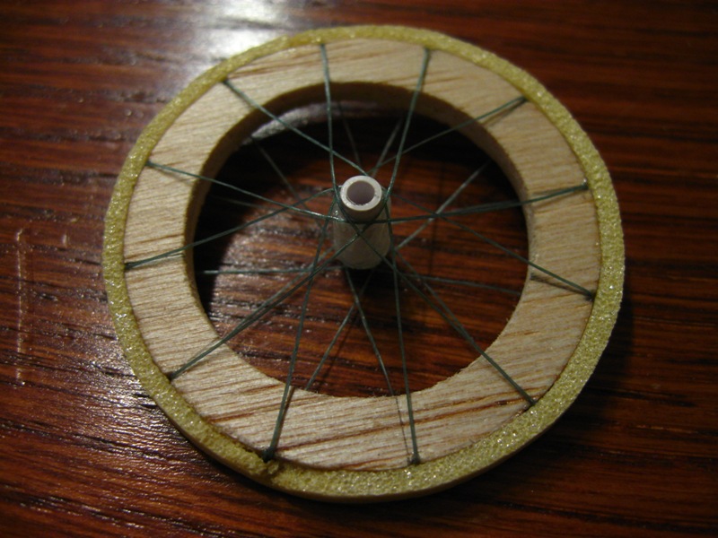 No sé si fiarme de que sea toda de balsa, pero hay que reducir peso a toda costa. En última instancia la hago más pequeña. Si en vez de 48 mm tiene 42 mm me ahorro con el mismo tipo de construcción 0,4 gr por rueda.