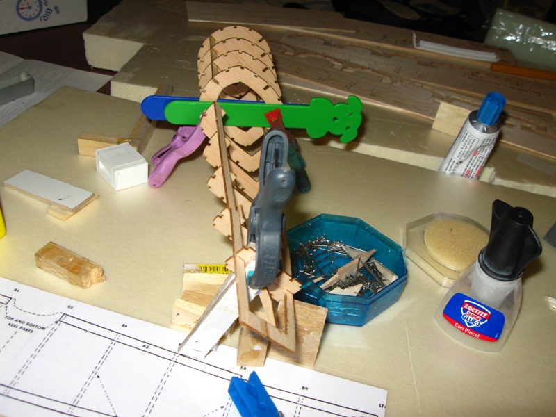 En fin, al tema. Lo primero que he hecho (bueno, en realidad lo primero es requetemedir las cosas, por si había algún error de corte en alguna costilla) ha sido poner en las costillas los tubillos que serán las guías del cable...
