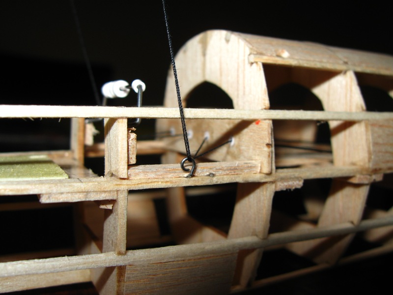 Yo he utilizado para la sujeción de las riostras unos anzuelos de acero carbono con argolla, existen de un montón de tamaños, lo comento por si los queréis usar en vuestro proyecto (por si, se puede mejorar, que ya es difícil)