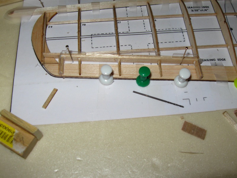 Para hacer los alerones simplemente he cortado el extremo de las costillas, he colocado dos travesaños de madera ligera y he repegado los extremos de las costillas...