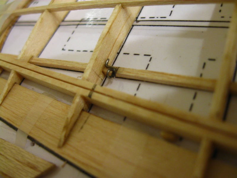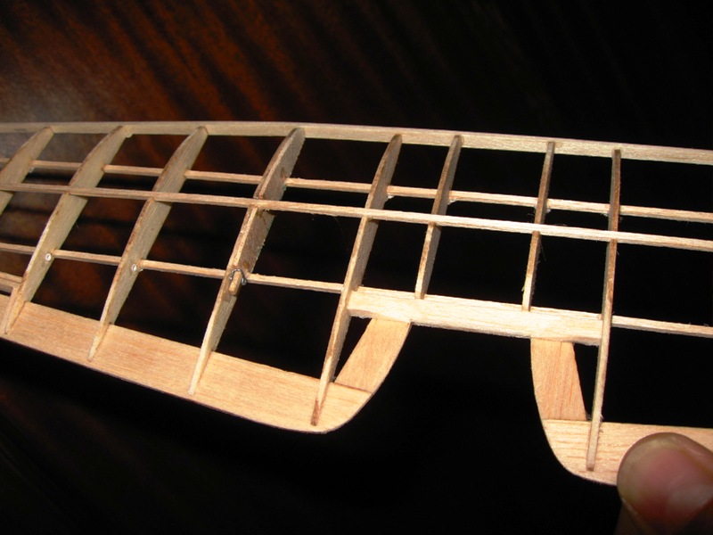 En la foto de antes, se ve un refuerzo de balsa de 1 mm en la costilla: es por que en la costilla 3 van anclados los montantes.