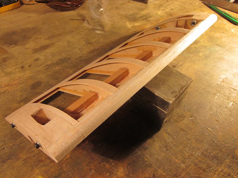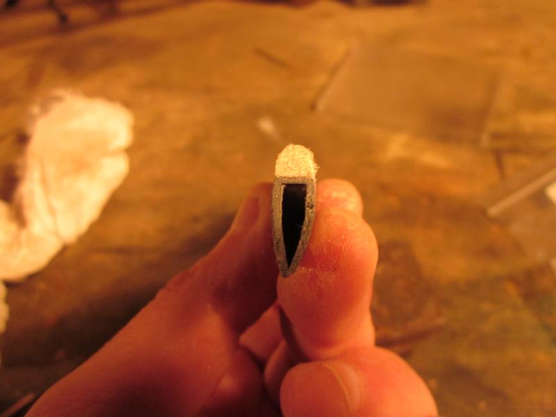 como veras la parte frontal del perfil, es plana, asi que tendre que pegarles, un liston de balsa,