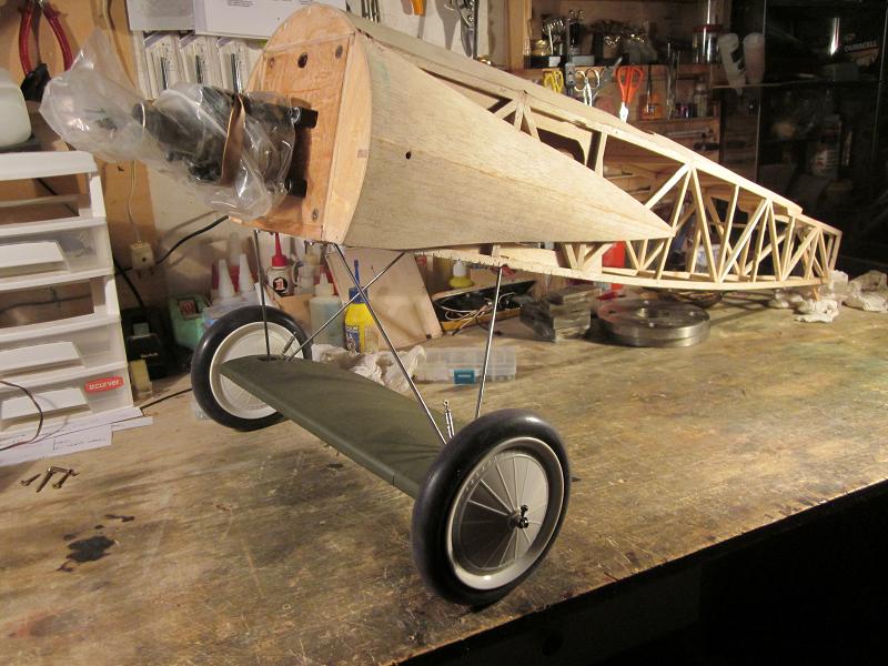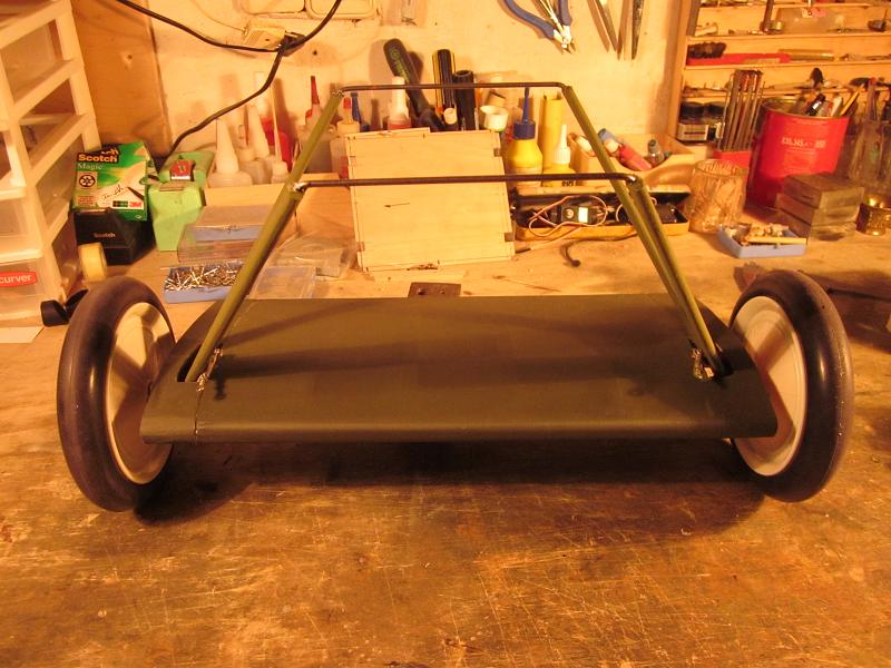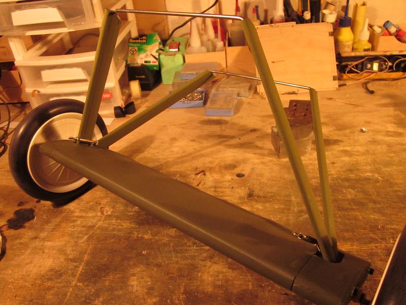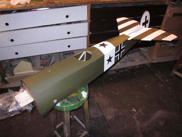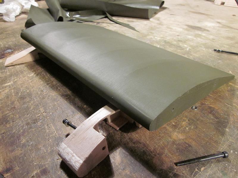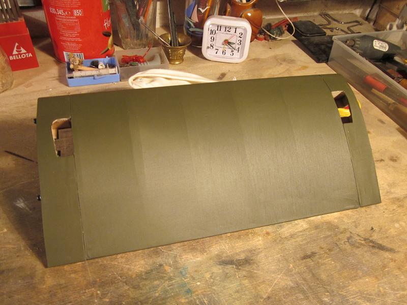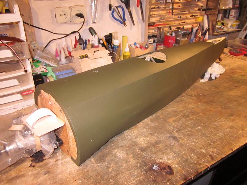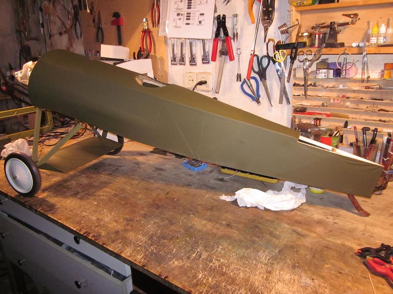 he terminado de entelar el fuselaje, en Solartex color verde oliva oscuro,