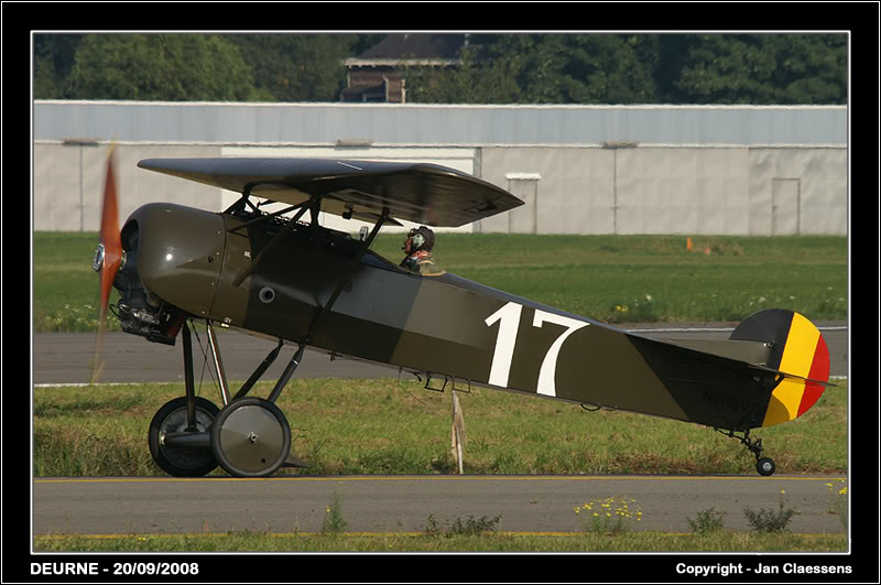 Como puedes ver es TODO verde oliva, con un 17 blanco en los laterales del fuse, otros dos 17 en el intradós del ala, con la bandera belga en la dirección y dos escarapelas belgas en el extradós del ala.