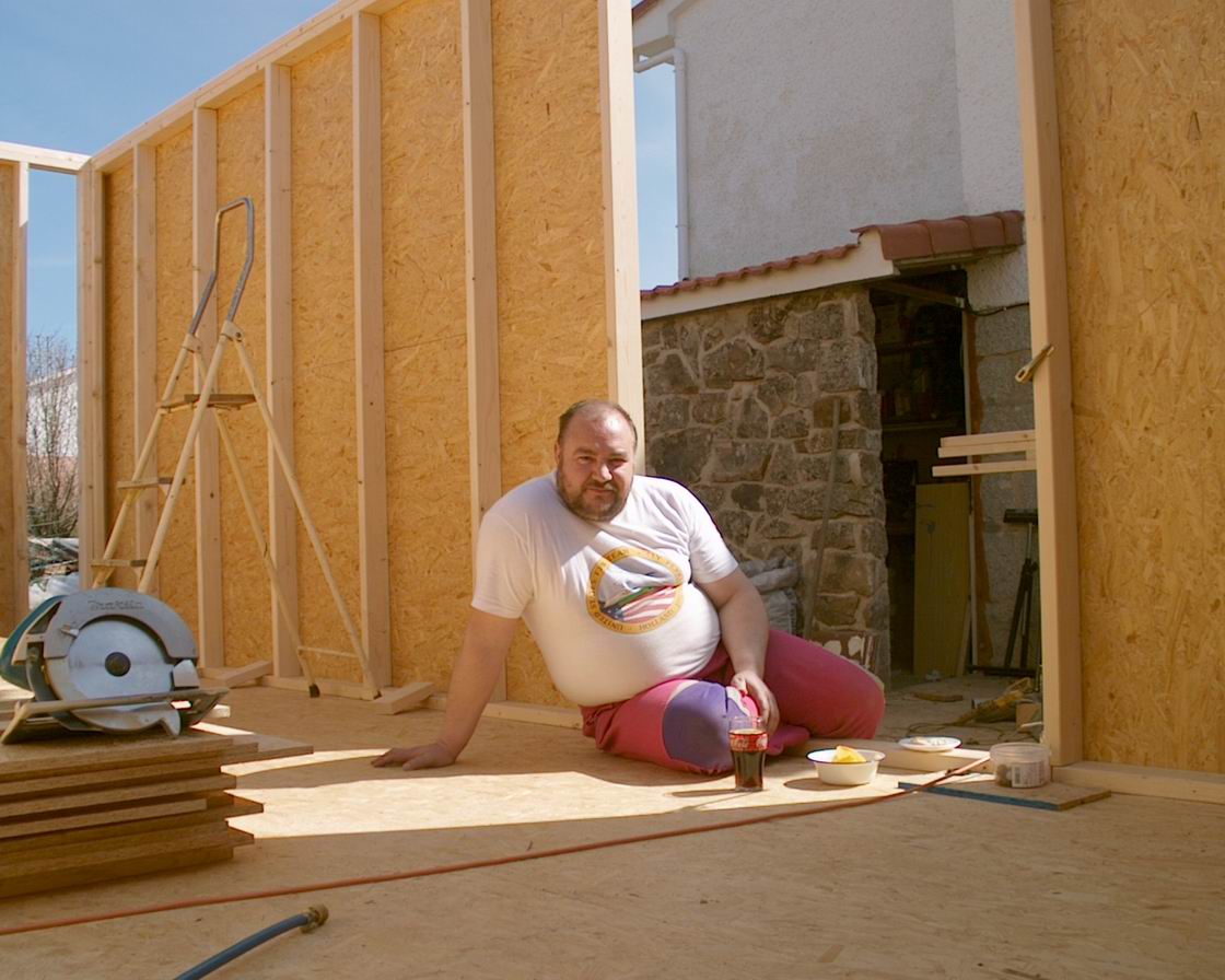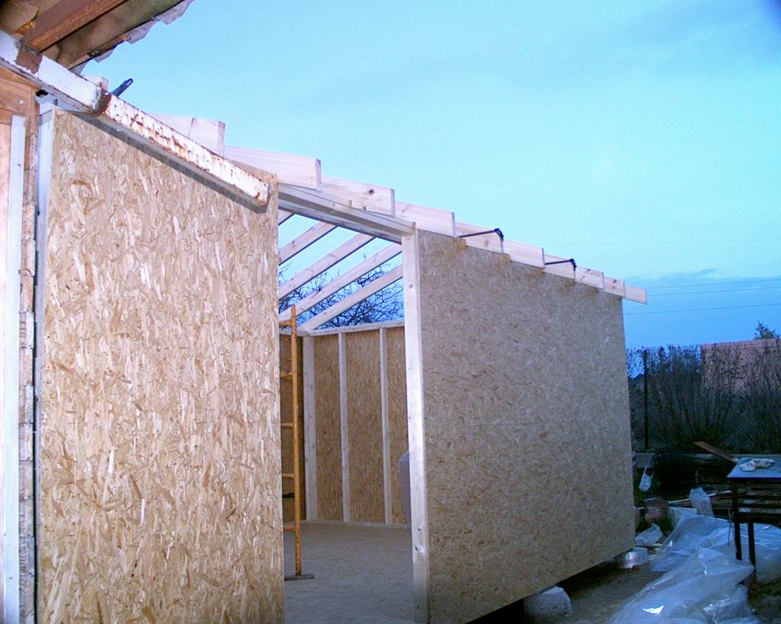 La estructura ya algo avanzada, con la ventana de PVC y parte de los largueros del techo.