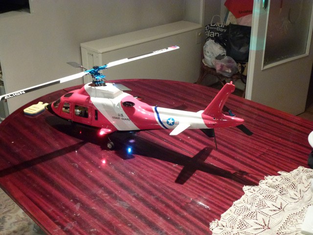 siguiendo con el tema, os pongo unas de mi Trex450 vestidito de guardacostas americano.