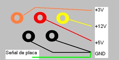 hay mas cables de los que necesito, el naranja es el de 3v, el negro es masa, el rojo es 5v y el amarillo 12v....pero.........