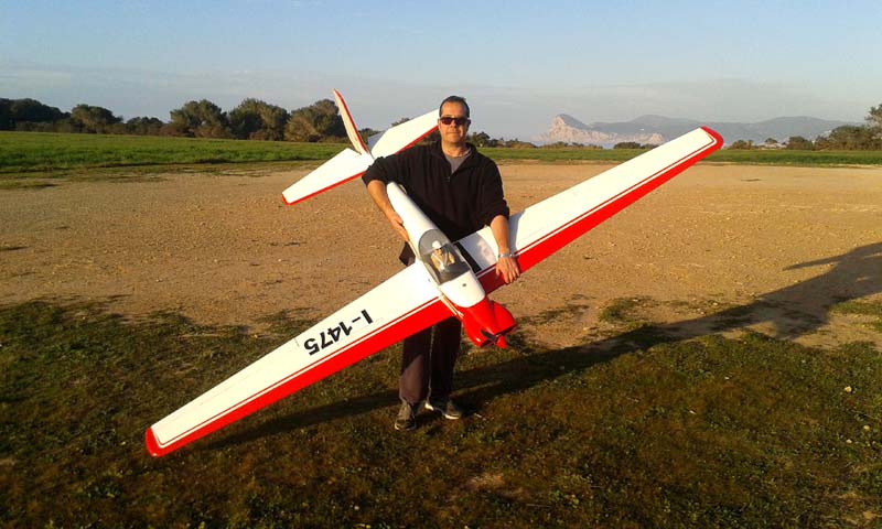 Nada especial por destacar, falta ahora poner algunas mezclas en profundidad para cuando actuan los aerofrenos (tremendamente efectivos y usados ya en el primer aterrizaje), el avión vuela solo, para mi gusto es una preciosidad y es facilísimo de pilotar, con un aterrizaje muy previsible y comodo.