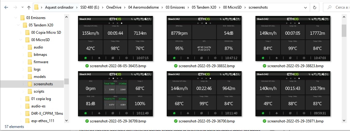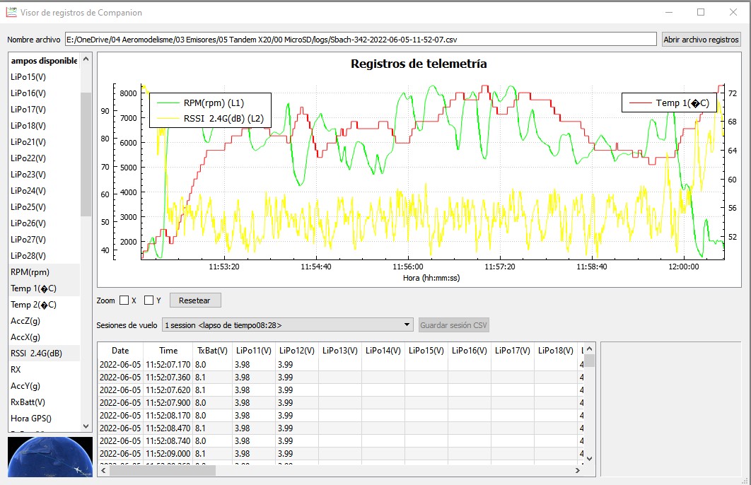 Llevo sensores de temperatura, voltaje de lipo, rpm y GPS. Todos esos datos los graba en la SD en la carpeta Logs con el nombre del modelo.