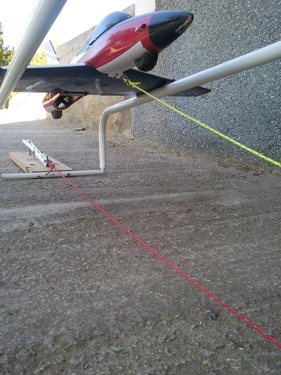 Uno de los problemas que veo de la catapulta es que ademas de mas engorrosa de montar y transportar, podria molestar a otros compañeros de vuelo en un momento dado, ademas hay que calcular bien el punto de enganche al avión y que sea sólido para evitar que arranque el foam, que es el material que mas vamos a usar en este tipo de modelos, también esta la pega de que si algo sale mal justo al soltar el modelo ya no hay vuelta atras y no se puede abortar el despegue. Otro problema es que si cambia el viento de dirección hay que reubicar la catapulta y con tantos metros entre goma y cable no siempre es fácil, pero vaya que como sencillo en si no puede ser mas sencillo.