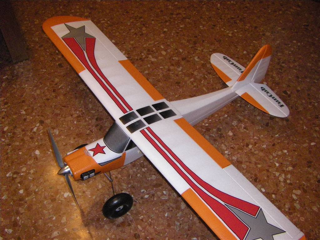 Hola, pues al fin termine la mia, solo me falta por hacerle una compuerta en la parte de abajo del fuselaje. Aqui os dejo algunas fotos, le cambie el patin de cola ya que comentais por aqui que queda muy endeble el que trae el avion, espero que con este cambio mejore un poco.