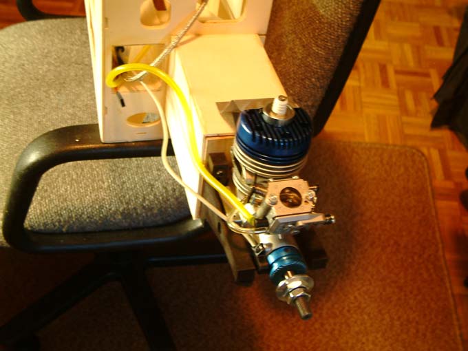 Acostumbrado a rodar motores glow por el consumo, he preparado 4 litros de gasolina y me he ido al campo de vuelo con el motor, bancada y lata de 4l.