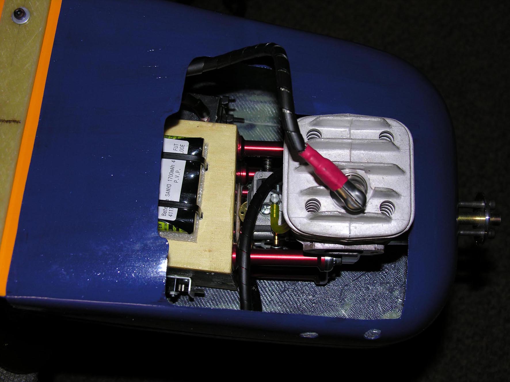 El motivo es que al llevar los tres servos detras necesito 'atrasar' el cdg para que el peso del motor lo centre, cosa que no he consaguido, hayq ue añadir 200 gr de plomo en el morro