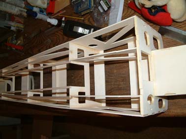 Algunas piezas serían mejorables como las tablas que se ponen en la parte superior del fuselaje, que deberían tener su sitio de colocación fresado y no que van donde quepan sin holgura. Cuando hablo de sitio de colocación me refiero a los cajeados que hacen en los costados en forma de cola de milano que hace que las piezas ajusten entre si.