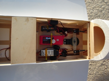 * Con un solo vuelo de 4 o 5 min puedo decir que el avión vuela muy noble y flota un huevo. El CG está algo retrasado aun colocando las alas en la posicion más retrasada (con la más adelantada no había forma de conseguir un CG decente permitiendo extraer las baterías con facilidad). No necesité trimar nada (cosa rara después de ver el resultado de algunas piezas).