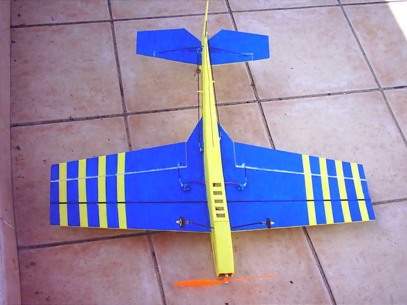 Hola, este es el mio, ya puse unas fotos en otro post, yo le hice el ala con depron de 6 mm, es mas facil y te ahorras el tener que poner los listones de balsa.