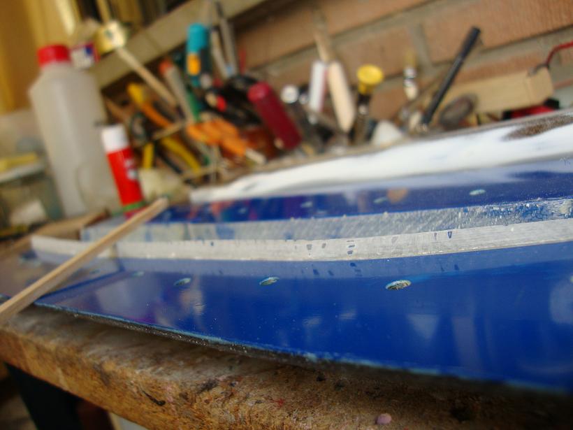 Esta ala la tengo tal como se vé en la foto, es que he estao haciendo otras faenas y no he hecho más que recortar los bordes de la fibra sobrante y poco más.