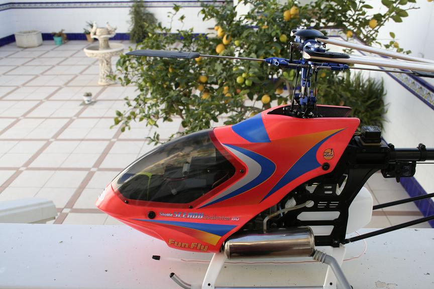 Pacman escribió:Bueeeeno, pues rescato este post del olvido, para poner unas fotos de mi heli, un sceadu 50, al que le acabo de poner el rotor en aluminio, tubo de cola en carbono, y patines del freya, me faltan las palas de carbono, en la cola las llevo, pero las principales se quedan de madera de momento, por si acaso.... :lol: