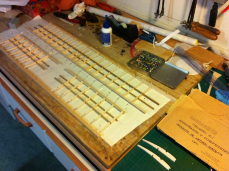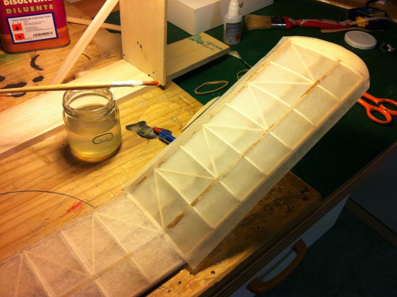 Cuando lo vuele ya os contaré, de momento fotos de la construccion. Por supuesto entelado con papel silkspan y novavia.