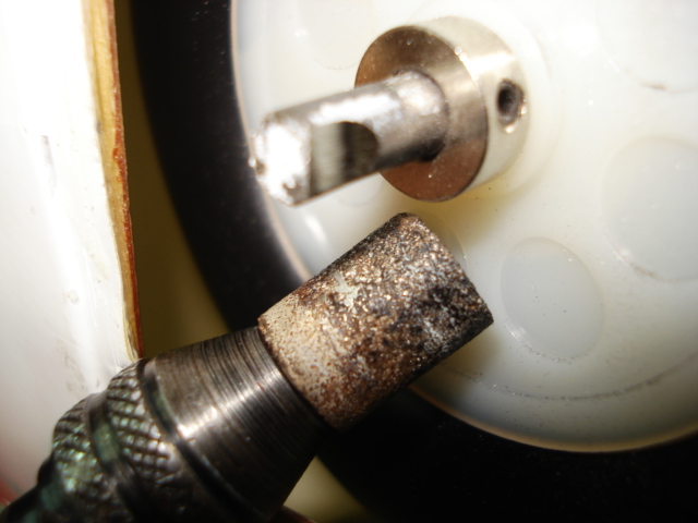 En el otro lado de la pata utilizo la Dremmel para "aplanar" la cuerda de piano a fin de facilitar el taladro.