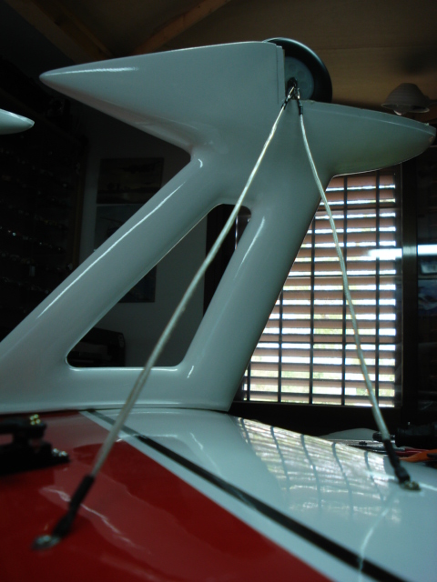 Así quedan los tirantes una vez en su sitio, todavia faltan los tirantes interiores con lo que habrá que reforzar también la panza del fuselaje, creo que copiare fielmente lo que ha hecho Popeye en el suyo, seria una temeridad no reforzar esa zona.