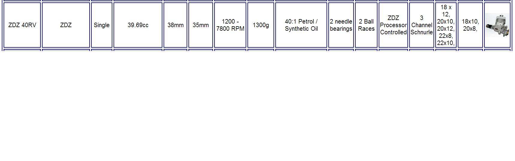 Uno es un ZDZ 40Rv, el cual es capaz de tirar una 22x8 Graupner Sonic a 7500 rpms.
