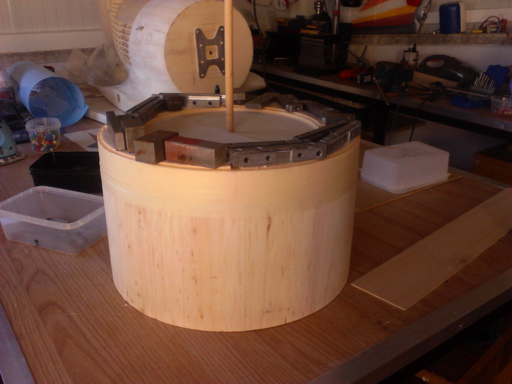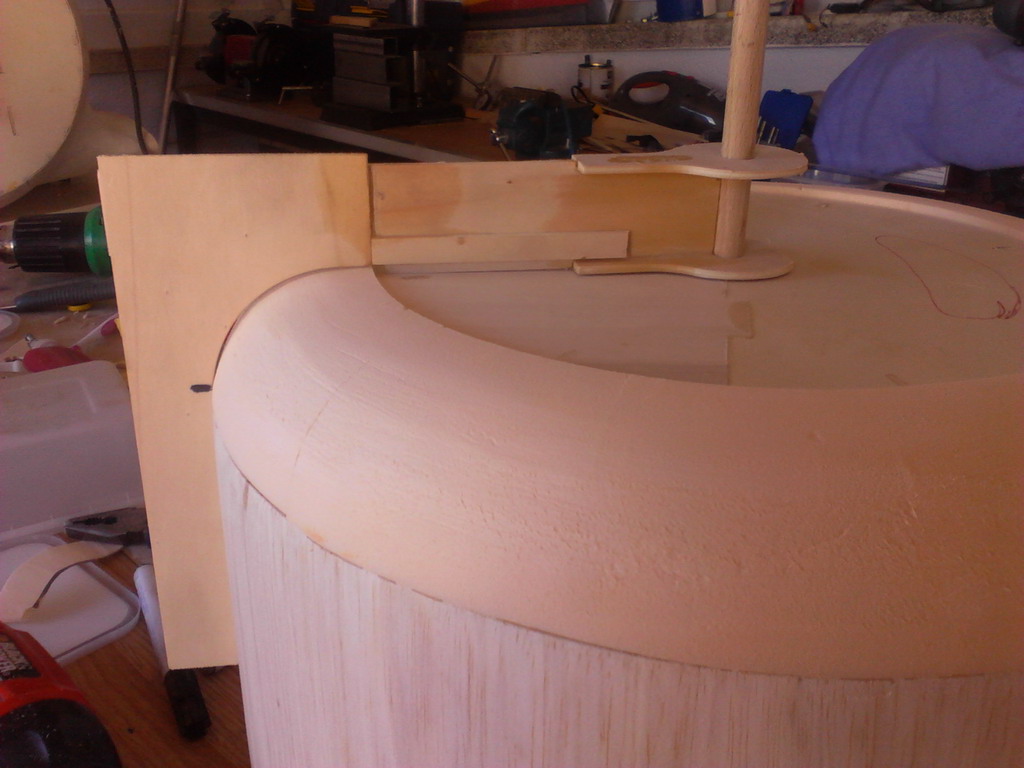 Al final le agregue un disco de DM en el frente y otro disco de contrachapado en la parte trasera, ambos sirven solo para que a la hora de hacer el molde, este tenga unas pestañas que hagan de refuerzo y mantengan la circunferencia sin deformarse, tanto de adelante como de atrás...