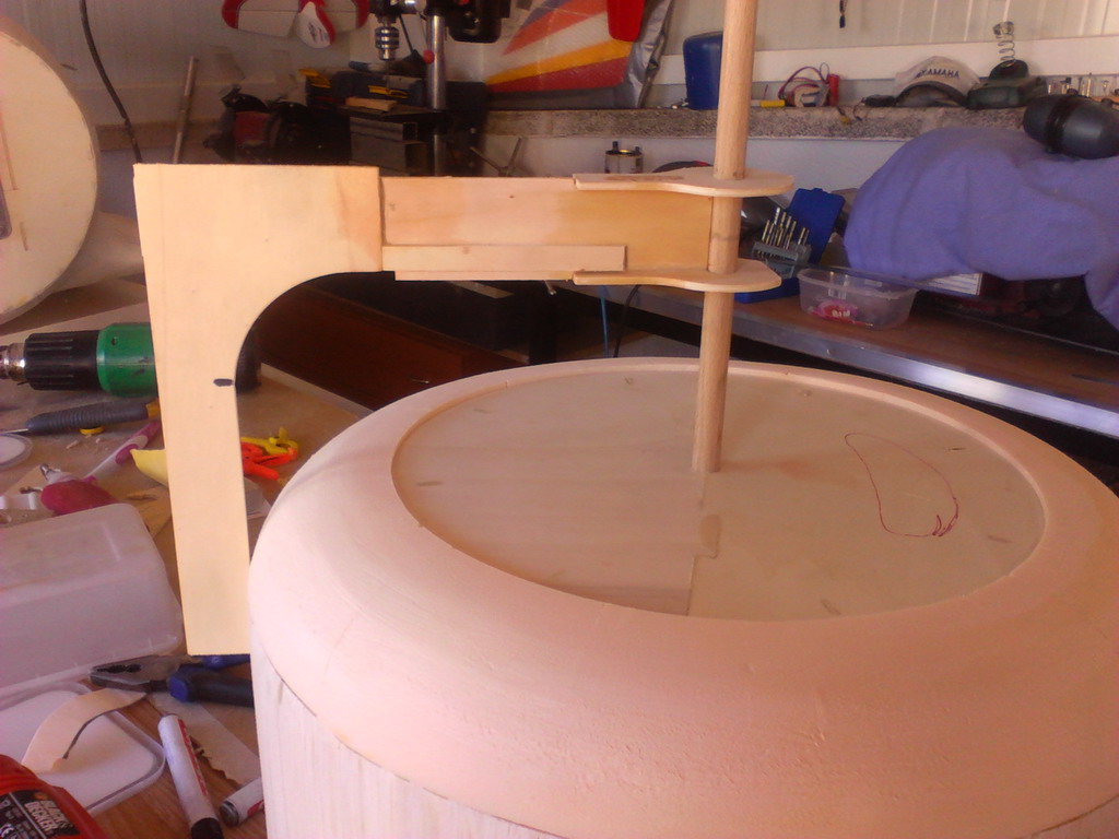 A cada disco le había hecho un taladro de 12mm para insertar una varilla de pino y así poder dejarlo alineado.
