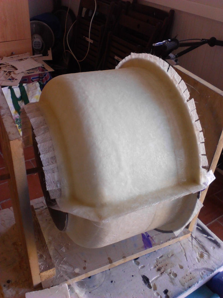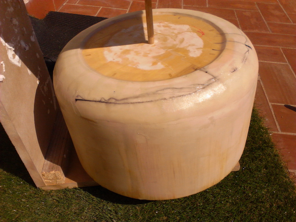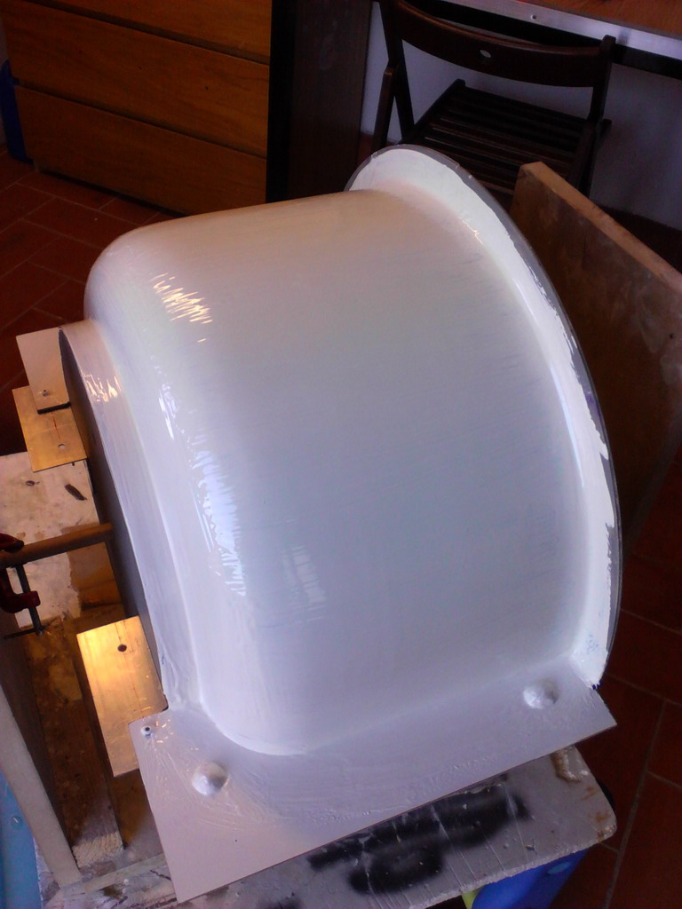 Una vez lijado, recubrí todo en fibra de vidrio de 50gr/dm2 y epoxi, luego le dí masilla poliester, lijada y pinté con imprimación.