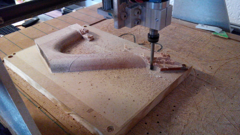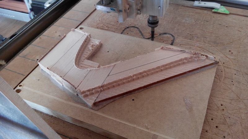 Como veran, para no gastar tanta madera, lo que hice fue ir pegando listones de haya sobre un tablero de DM para que el mecanizado no genere tanta porqueria y ademas para ahorrar en fresa...que aunque no parezca, la madera tambien desafilan las fresas... :wink: