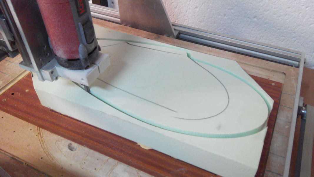 La idea es colocar un trozo de poliuretano expandido de 160gr/dm3 peso especifico, de medidas 490x220x50, pegado a una tabla de MD o aglomerado ("ségual" :mrgreen: ) y comenzar a mecanizar.