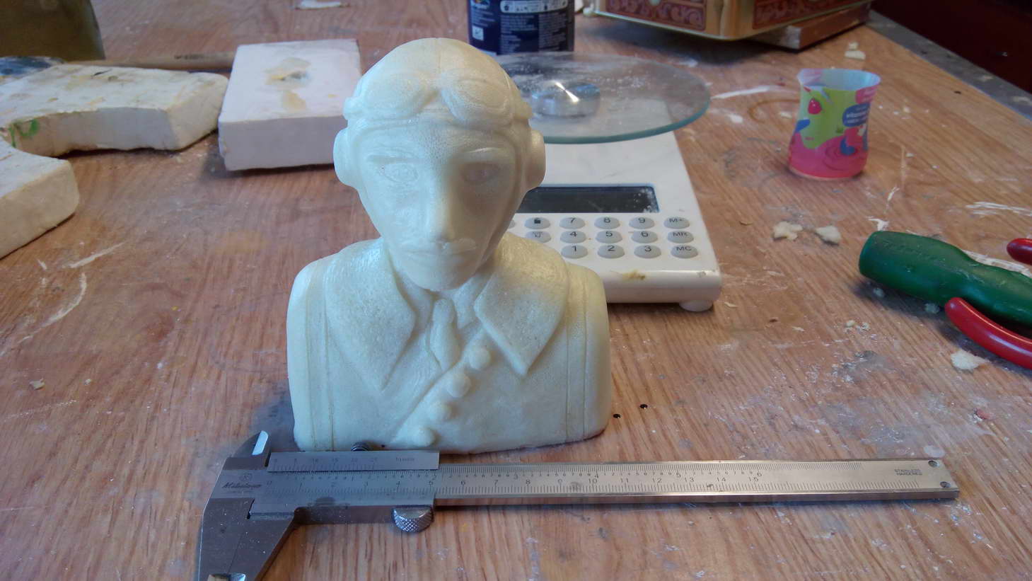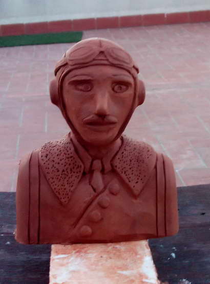 Como siempre, en mi línea, hice un busto de un piloto en arcilla (jamas hice nada parecido... :| ), el cual tiene un aire a un alien francés más que a un piloto de los años dorados de la aeronáutica.
