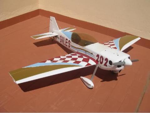 Pues hace poco he comprado un Giles 202 de segunda mano, a un compañero aeromodelista de Sevilla, el caso es que este compañero lo compró así, por lo visto su anterior dueño cambió el entelado completo y nadie sabe de que marca es, tiene 1820 de envergadura, y monta un O.S.120AX, alguien me puede indicar por donde debe estar el centro de gravedad, lo tengo ya repasado y preparado para levantar el vuelo y quisiera afinarlo lo máximo posible, adjunto fotos para que lo veáis.