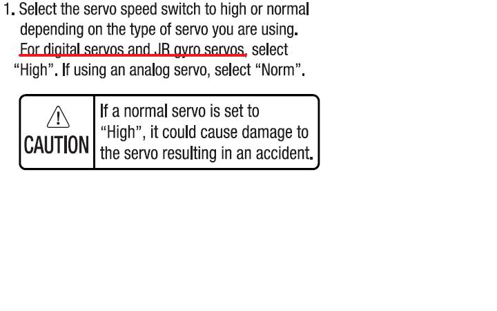 Buenas noches a todos, no estoy de acuerdo, mas que nada por que lo dice el manual, el modo hi es para servos digitales o para servos JR para gyros, el modo norm lo dice explicitamente que es para servos "analog" usease los normales de toda la vida. Tambien dice en la advertencia que si un servo normal es conectado en modo hi se puede dañar.