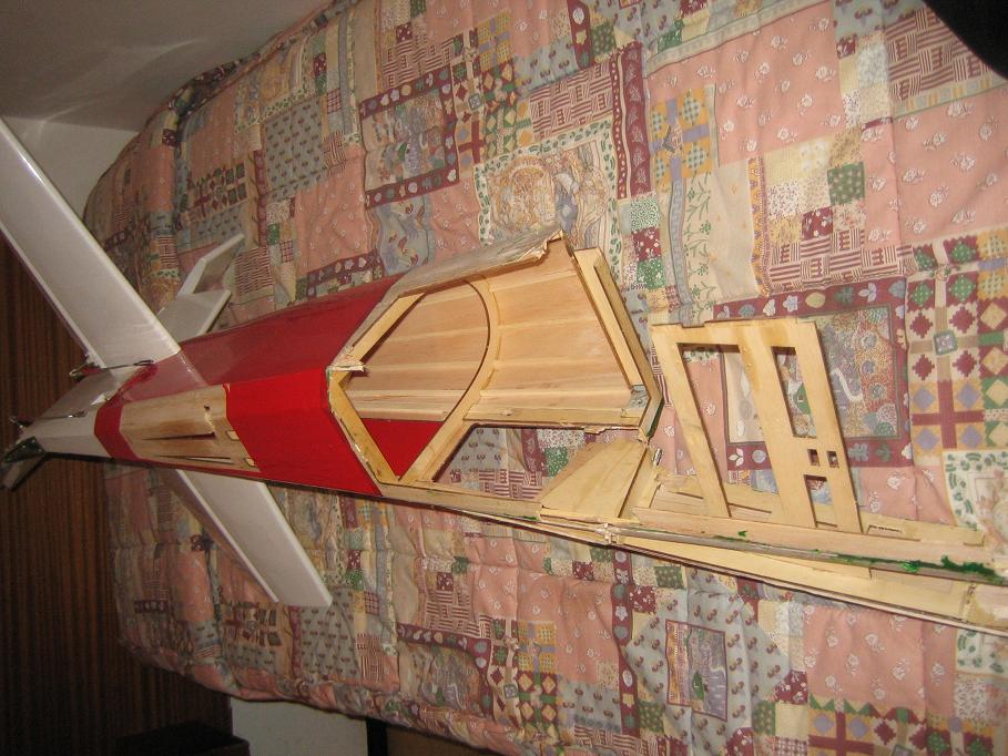 4. Ya que lo peor se lo ha llevado la bancada del motor, intentare contruir una de tipo gasolina (cajón rectangular) en vez de la de glow que llevaba (ver fotos)