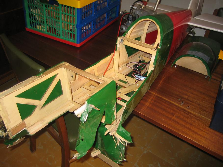 Lo que quedo despues de quitar el entelado...Las alas tan solo tienen un par de costillas rotas.