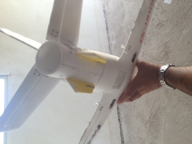 - He puesto un refuerzo en el morro de plastico para evitar que se arruge en los aterrizaje.