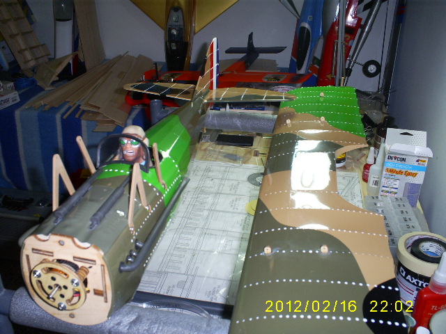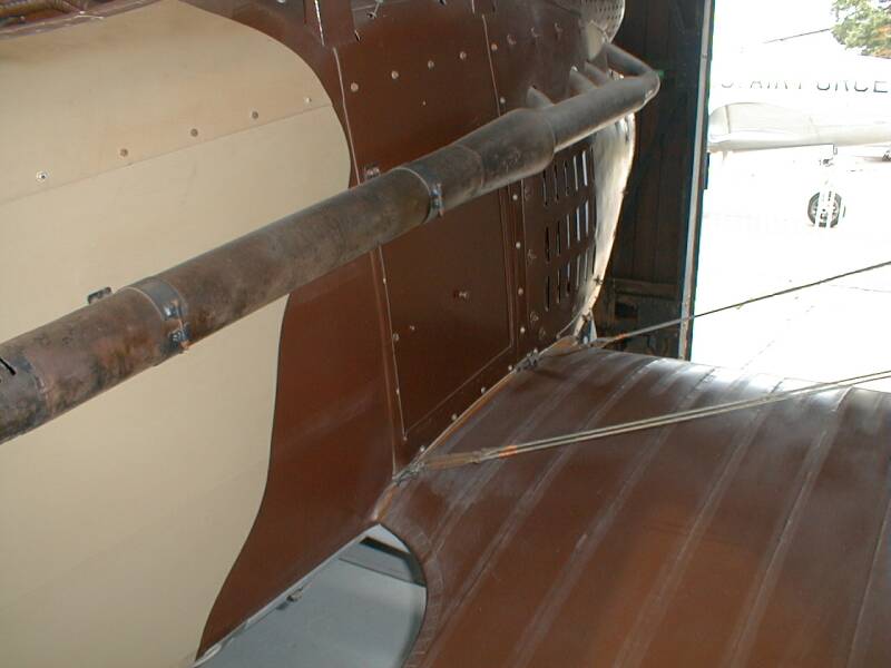 Sólo tenía metálica la parte del cubremotor/radiador (motor cowling que dicen los ingleses) que eran unas chapas metálicas que estaban atornilladas al entramado del fuse. Atornilladas, que no remachadas, con el fin de poderlas desmontar para acceder al motor, depósito de combustible, depósito de armas,... con relativa facilidad.