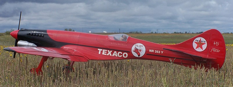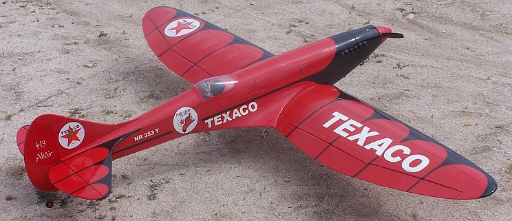 Tiene 1790mm de envergadura, pesa 3100 gr. Está motorizado con un OS46 AX, lleva tren retractil mecánico de Thunder Tiger y Flaps. 6 servos estándar 3001, e interruptor electrónico para el encendido de la bujía. Por supuesto con la pintura y decoración se ha pretendido simular las habituales en los aviones racers de los años 30.