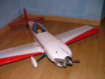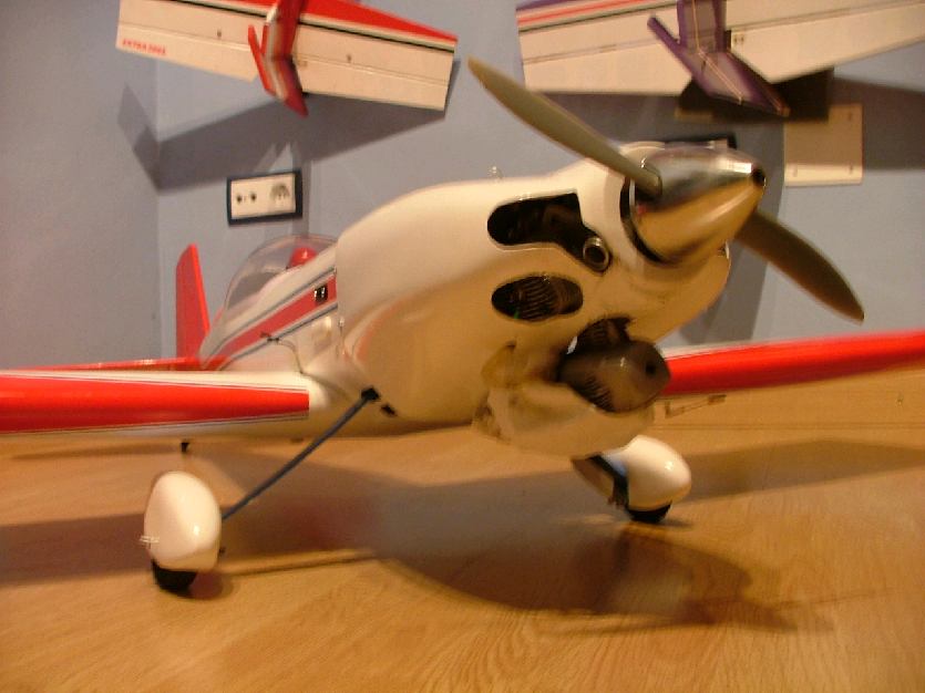 Mi colega lo llevaba motorizado con un motor de carreras MVVS .40 con resonador y pala APC 10*6 (la mejor despues de muchas pruebas) Yo lo tenía equipado con un Simple OS .46 AX con el escape normal y la pala APC antes mencionada.