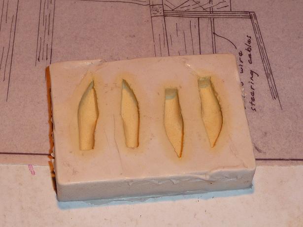 Te pongo fotos del proceso de fabricación del molde de unos cilindros para adornar un corsair y del molde usado para hacer los escapes. En el caso de los cilindros la resina que vierto sobre el molde es de mayor espesor para dar algo de consistencia al motor radial. En este caso el peso de los 9 cilindros es de 30 gr. El conjunto de escapes no llega a los 5-6 gr.