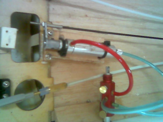 el pisston es uno que tenia de un tren de robart adaptado a este menester,y en cuya cabeeza e atornillado una pletina,que atraviesa la varilla que se encarga de empujar/estirar el mecanismo d epliegue.