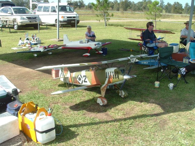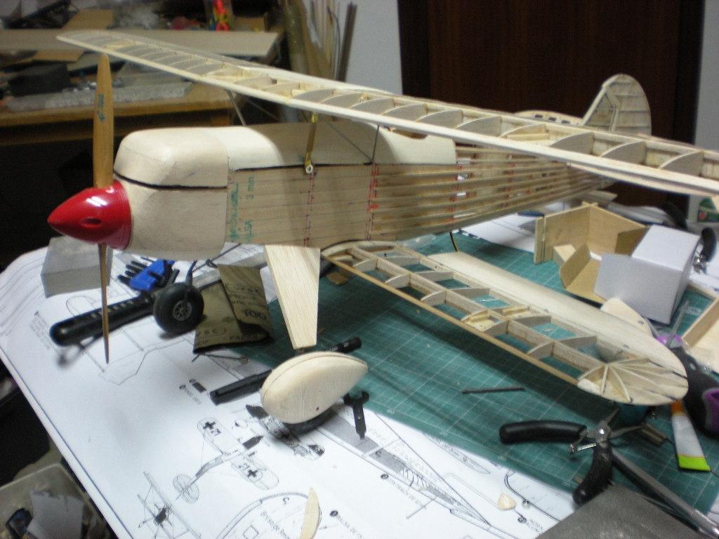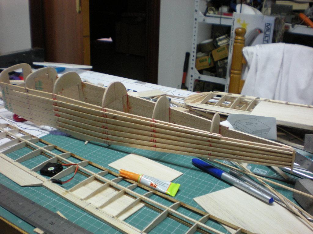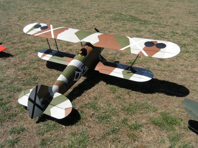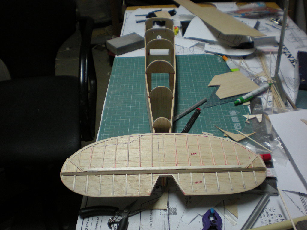 La escala exacta la desconozco, ya que tampoco sé las medidas originales del aparato a escala 1:1. Pero he medido la envergadura del ala superior y me da 95cm. y el fuselaje unos 68cm. hasta el final del timon.