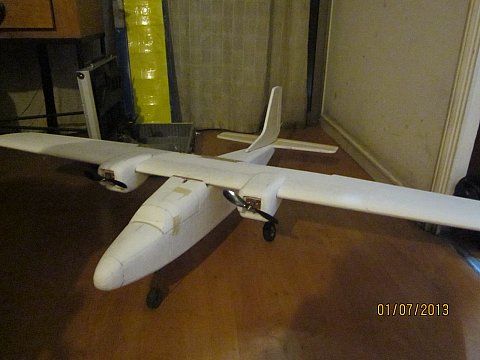 Ahí les dejo unas fotos de mis inventos, todos hechos en casa/( este es una variación del twin star de multiplex que cloné, el segundo por que primero se cayó, iba con motorización 2 x GWS Em400 brushed y un peso de 1200 grs., el nuevo va igual en principio con estas nuevas helices pero pesa algo más, ambos en aislapol, ademas de uno en madera tambien con dos GWS geared 350, pero ahora volando con dos GWSEM400 sin drama.