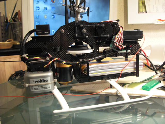 Estoy montando un Caliber 5 con el helicommand. En primer lugar, dicho aparatito no esta pensado para aparatos grandes, ya que el cable que une la centralita con el sensor, es muy corto y en mi caso, he tenido que alargarlo. tambien he tenido en problema que comentais de que actuaba al reves, por si sirve de ayuda a alguien, que no tiene cable PC como yo, lo solucioné poniendo todos los servos del ciclico a normal en la emisora. Despues siguiendo las instrucciones, paso 1 indicar la direccion de los sticks, paso 2 invertir los servos necesarios, paso 3 elegir el tipo de ciclico, paso 4 direccion del helicommand y paso 5 sentido del rotor (o algo asi ya que ahora no tengo el manual cerca) con lo que consegui que actuara correctamente. Lo he colocado en la parte de atras del chasis, queda por debajo del tubo de cola, con lo que consigo que el sensor quede libre. cosa que no es facil. Ayer empece a rodar el motor y espero si el tiempo lo permite, empezar a volarlo este fin de semana. A ver que pasa con la cola. Intentare poneros una fotos.