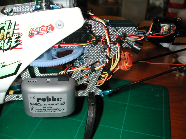 Bueno hos pongo unas fotos para que veais como lo he colocado todo. he puesto el helicommand sobre el servo de cola y como ya hos he contado funciona a las mil maravillas.