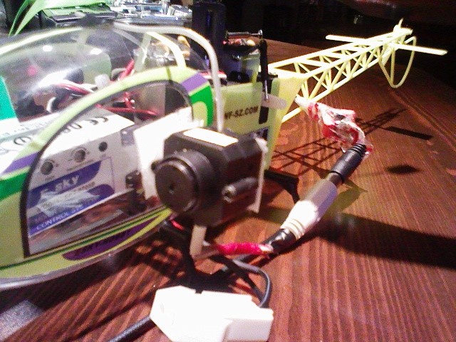 Bromas a parte :wink: le he instalado la minicamara que le puse a mi avion de indoor el CITABRIA, a este pequeñajo y no es para tirar cohetes pero esta guapo ver el vuelo desde la perpestiva del heli.